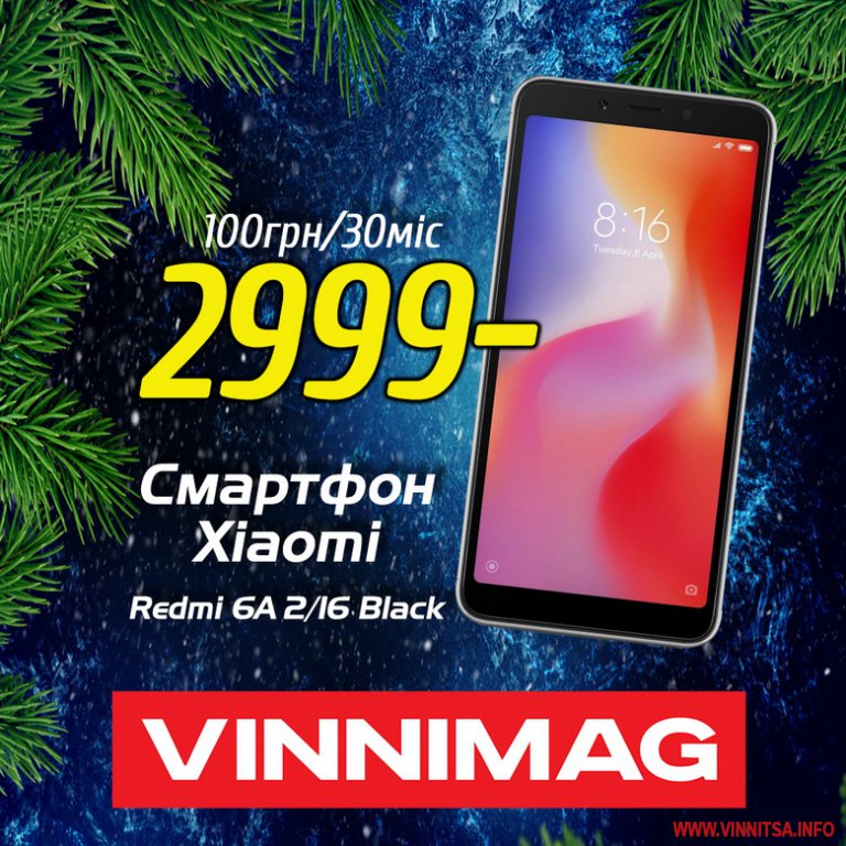 - Смартфон Xiaomi Redmi 6A 2/16 Black (M1804C3CG) 2999 грн або в розстрочку 100грн на 30 місяців та отримай знижку 50% на смарт-годинник Smart Watch DZ-09 Black.