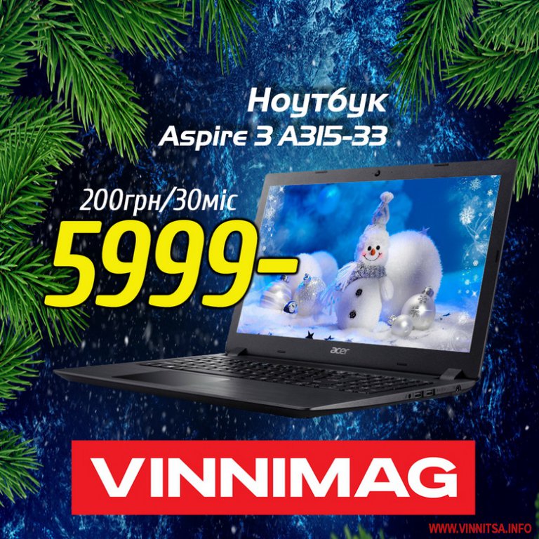 - Ноутбук Acer Aspire 3 A315-33 (NX.GY3EU.023) Obsidian Black для роботи та навчання всього за 5999грн або в розстрочку 200грн на 30 місяців+ 1000гб в подарунок.