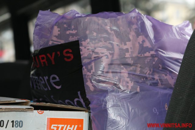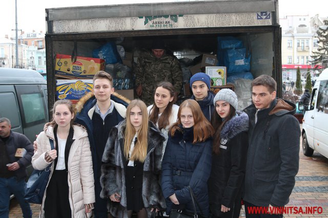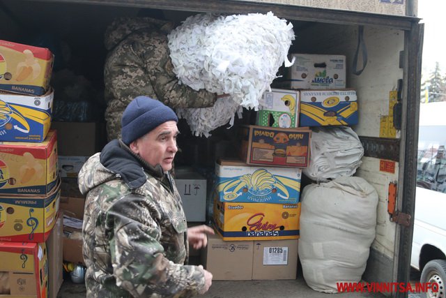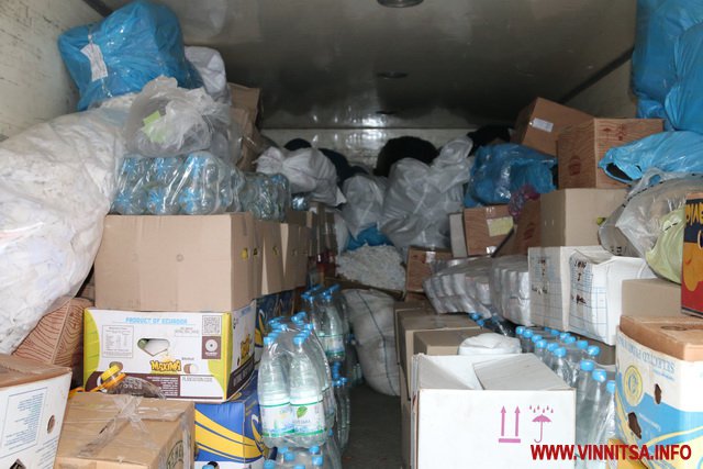 Вантаж потрапить не тільки на бойові позиції, але в дитячий будинок. Сьогодні Вінниця передала кількасот кілограмів солодощів, засобів гігієни, чоботи, в’язані шапки і рукавиці, комбінезони, медикаменти, бензопили і навіть банери.