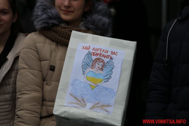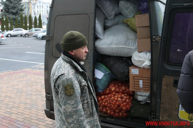 21 грудня Вінниця відправила у зону АТО традиційний новорічний вантаж. Два буси вмістили понад 10 тонн продуктів і речей для захисників. Бійцям передадуть 36 маскувальних сіток, які вготовили школи міста, а також вітальні листівки зі святами. Зібрана допомога поїде в Луганську і Донецькі області.