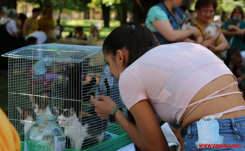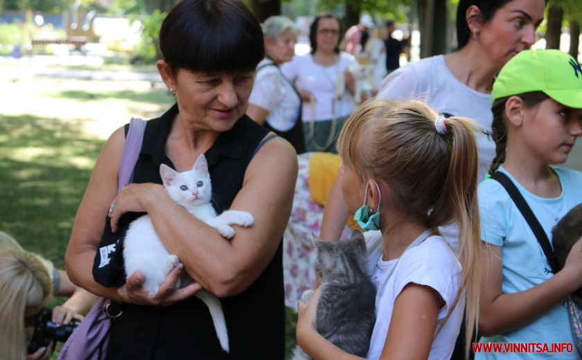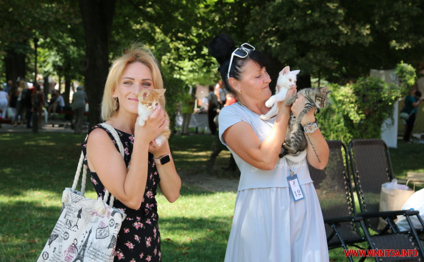 Песиків та котів на виставку принесли як і волонтери, так і вінничани, котрі прочитали про даний захід у соціальних мережах. У кожного своя історія. Хтось прийшов із цілим кошиком кошенят, попередньо знайшовши їх у полі, хтось приніс домашніх котів, зазначивши, що вдома і так багато тварин.