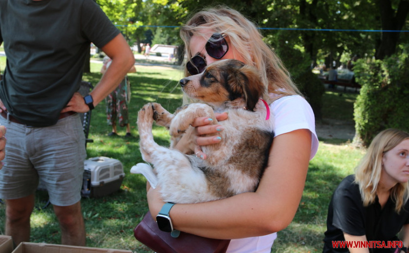 «У мене син мріє про собаку. Він зараз у дитячому таборі, приїде, буде йому сюрприз. Я взагалі про цей захід не знала, побачила випадково. І з першого погляду закохалась», - розповідає вінничанка Катерина.