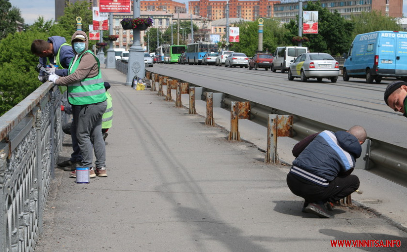 1 червня почали оновлювати поручні на Центральному місті у Вінниці. Близько десятка робітників наносять фарбу сірого кольору на огорожу з боку, який веде до автовокзалу. Поряд також збивають фарбу з відбійників попід дорогу.