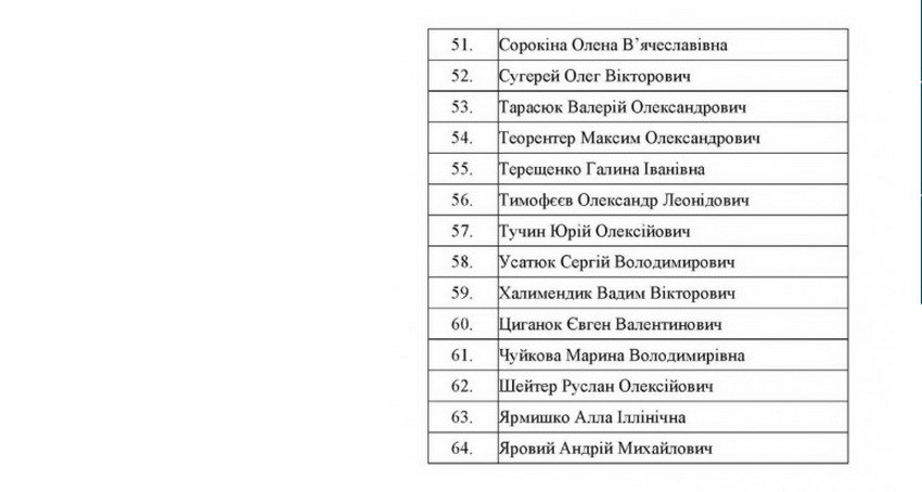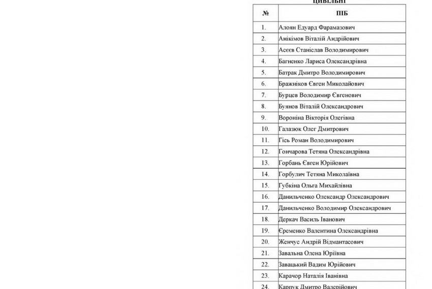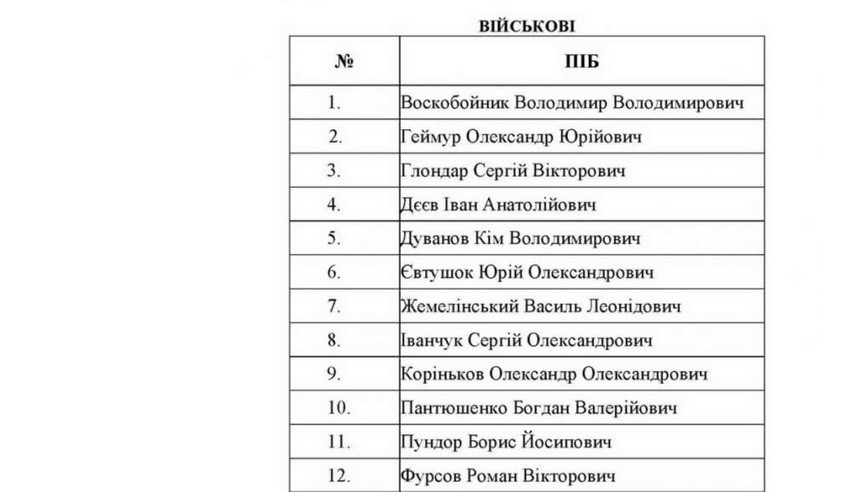 СПИСОК ЗВІЛЬНЕНИХ ПОЛОНЕНИХ