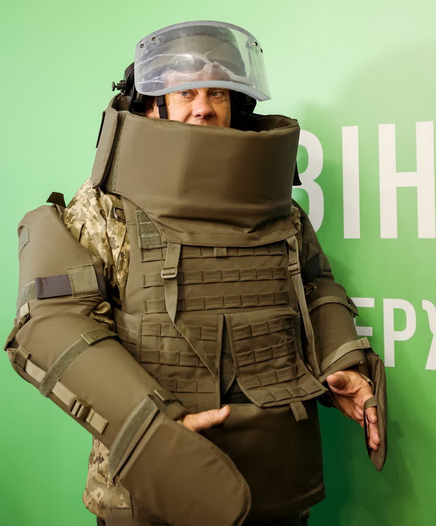 «Це легкий костюм-трансформер для розмінування на основі бронежилету «Оберіг-6» 6 класу захисту з захисним шоломом та балістичними протиосколковими пластинами. Це українська розробка із врахованими побажаннями вінницьких саперів - безпосередньо спілкувались із київським розробником. Американський аналог коштує у рази дорожче, український костюм сапера коштує 190 тис. грн.