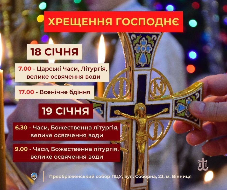 На фейсбук-сторінці Вінницько-Барської єпархії опублікували також розклад богослужінь на свято Хрещення Господнього.