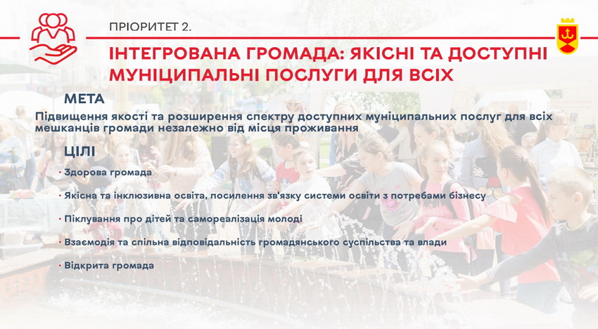 Пріоритет 2. Інтегрована громада: якісні та доступні муніципальні послуги для всіх.