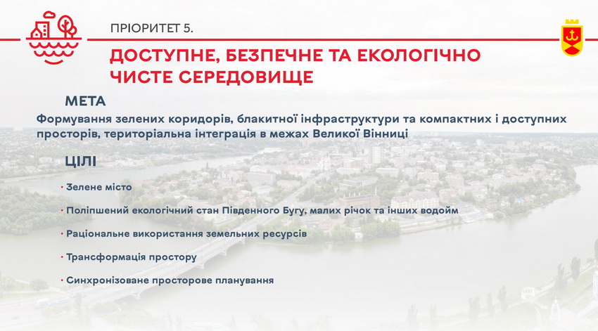 Пріоритет 5. Доступне, безпечне та екологічно чисте середовище