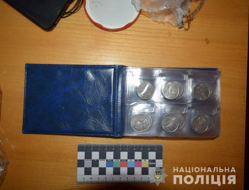 Під час проведення санкціонованого обшуку в орендованій зловмисниками вінницькій квартирі слідчі вилучили мобільні телефони, сім-карти різних операторів мобільного зв’язку, відмички, балаклави, грошові кошти у валюті та гривні, ювелірні вироби, колекції монет.