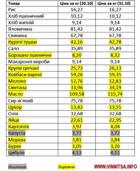 За останні десять днів на Вінниччині подорожчала значна кількість продуктів. Згідно даних Державної служби статистики, найбільше прибавила в ціні «молочка». Тепер середня вартість масла становить 115,74 гривні проти 109,58 гривень. За літр молока тепер просять більше на 10 копійок – 12,83 гривень, сметана обійдеться майже на гривню дорожче – 34,19 гривні.