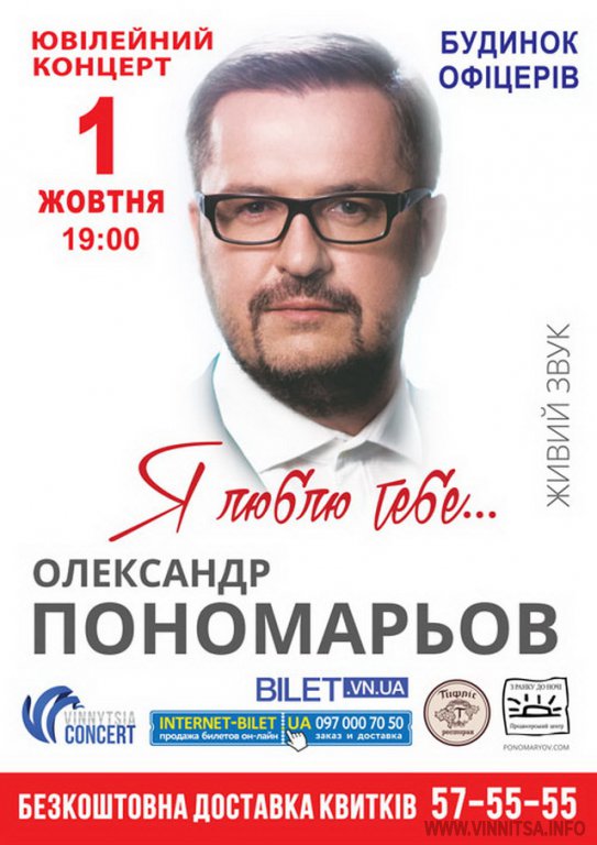 - Над грандіозною концертною програмою «Я люблю тебе» Олександр Пономарьов працював півроку. Це унікальний шанс наживо почути добре знайомі пісні, познайомиться з новими і згадати всі ті щасливі моменти, які кожен із нас переживав під музику головного романтика України, - запрошують всіх організатори – компанія «ВІННИЦЯКОНЦЕРТ».
