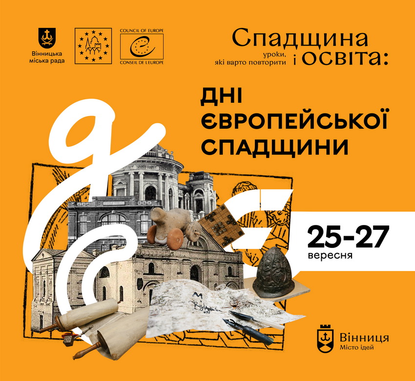 Впродовж 25-27 вересня у Вінниці планують організувати екскурсії та інтерактивні виставки, присвячені Дням європейської спадщини. Участь у всіх заходах, окрім онлайн-екскурсії, – за попередньою реєстрацією. Дні європейської спадщини – загальноєвропейська ініціатива Ради Європи, яка передбачає доступ до закритих об’єктів, організацію інтерактивних виставок, презентацію нових екскурсій та унікальних подій з метою привернення уваги до матеріальної та нематеріальної спадщини.