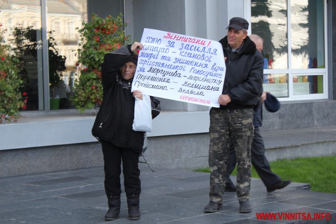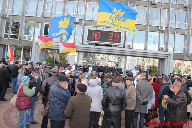 29 жовтня «демократичні» сили Вінниці зібралися на черговий мітинг під міською радою. Перед публікою з 60 чоловік виступали представники партій «Народний контроль», «Свобода», «Укроп», «Батьківщина», «Партія пенсіонерів», «Громадянська позиція».