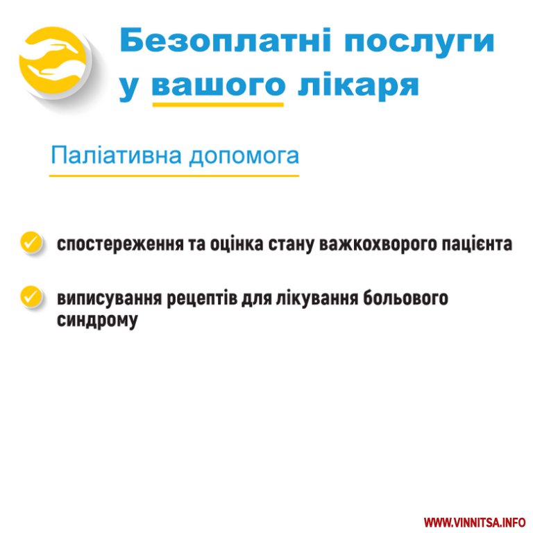 У компетенції лікаря первинки також окремі послуги паліативної допомоги – спостереження та оцінка стану важкохворого пацієнта, виписування рецептів для лікування больового синдрому.