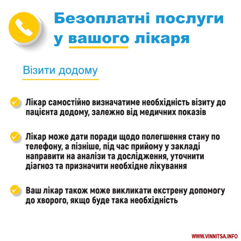 Лікар самостійно визначатиме необхідність візиту до пацієнта додому, залежно від медичних показів. Лікар може дати поради щодо полегшення стану по телефону, а пізніше, під час прийому у закладі направити на аналізи та дослідження, уточнити діагноз та призначити необхідне лікування. Ваш лікар також може викликати екстрену допомогу до хворого, якщо буде така необхідність.