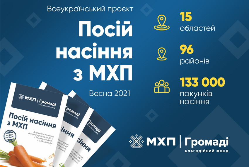 «Перший етап проєкту «Посій насіння з МХП» тривав з 1 березня до 30 квітня і передбачав часткове забезпечення якісним насінням орендодавців холдингу, які уклали договір оренди землі з МХП до 31.12.2020. Проєкт охопив населені пункти у 15 областях та 96 районах України, де є виробничі потужності компанії. Загальна кількість групових пакунків – 132 811 штук. Видача відбувалася з дотриманням всіх передбачених законодавством карантинних вимог», – йдеться у повідомленні.