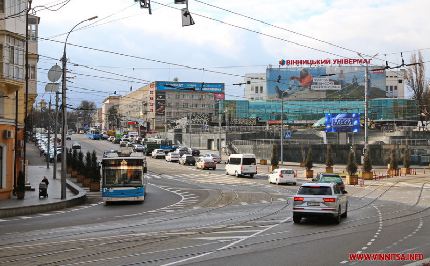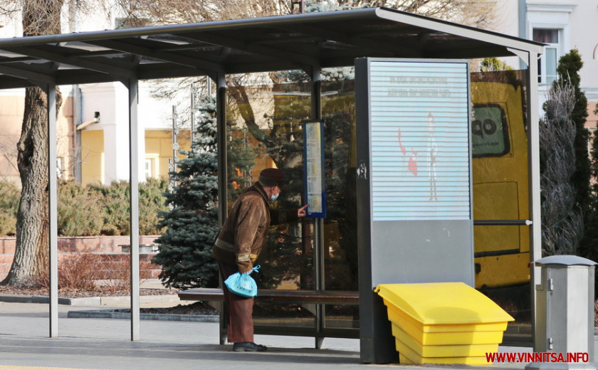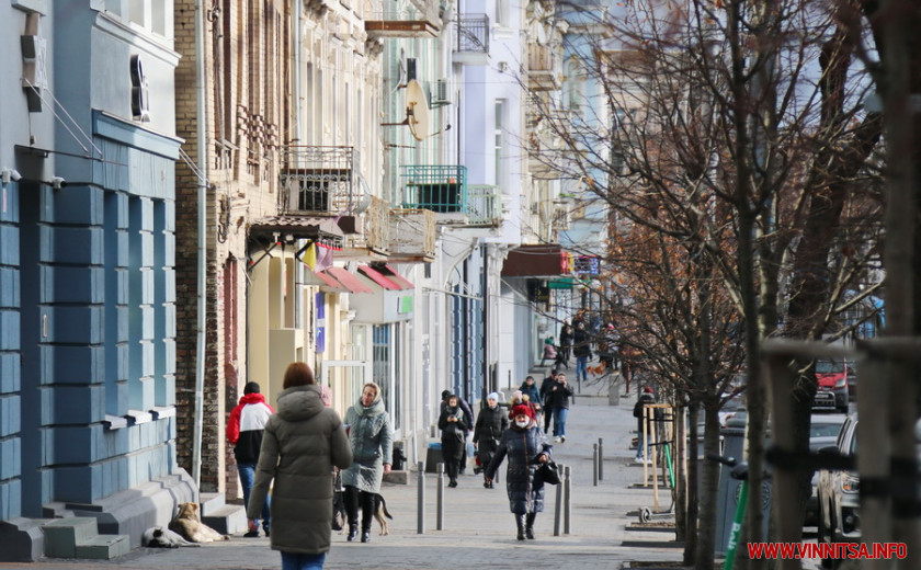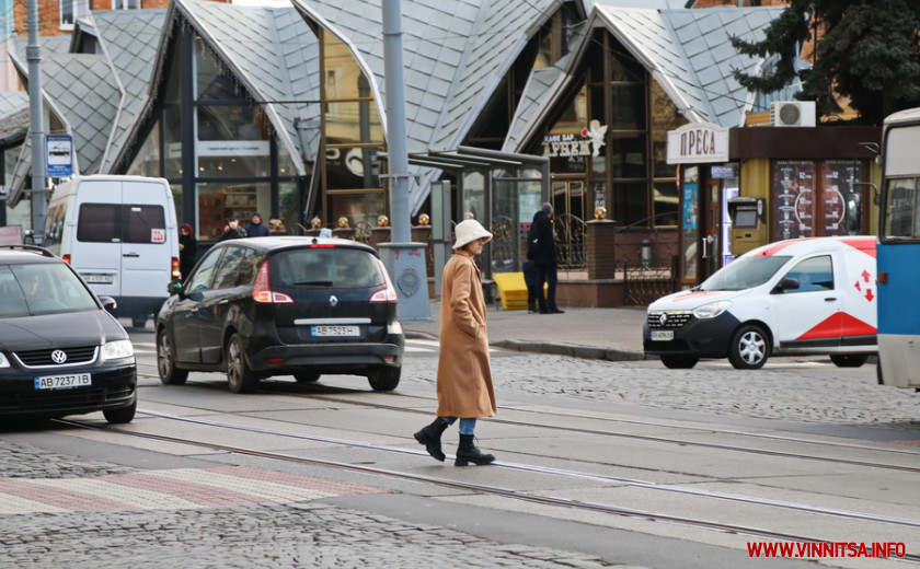 Хоч сонце і світить, однак надворі зовсім не тепло. Дує прохолодний вітер, через який вінничани кутаються у теплий одяг і швиденько переміщуються з транспорту до теплих приміщень.