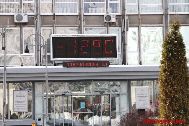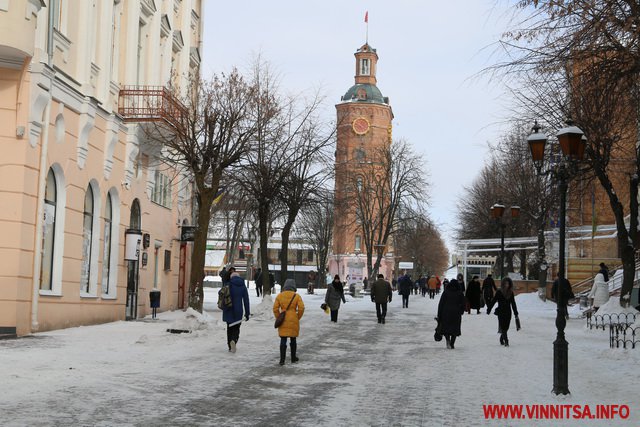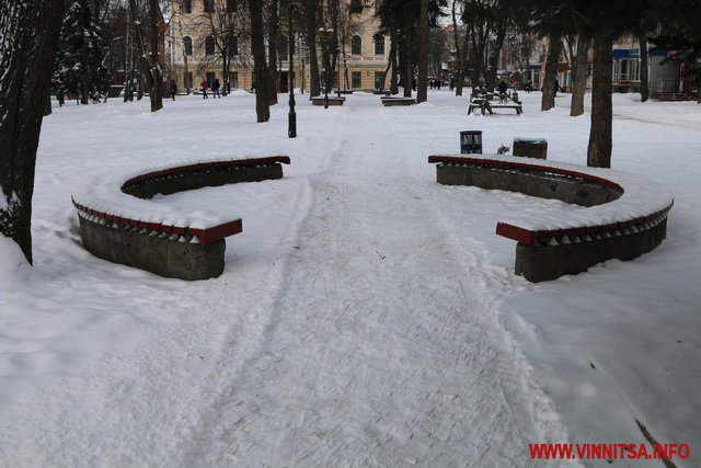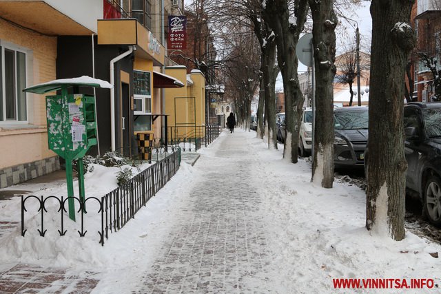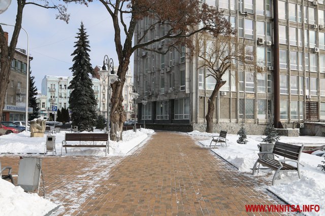 В останній день зими у Вінниці 12 градусів морозу. Зранку комунальні служби очистили дороги та тротуари міста від снігу, в малолюдних місцях протоптані стежки.