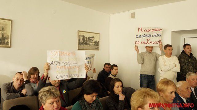Перед початком засідання під мерією зібрались місцеві активісти та бійці АТО. «Актив» був проти ряду пунктів видатків у бюджеті на наступний рік. Бійці АТО, серед яких захисники Донецького аеропорту, навпаки, прийшли підтримати рішення. За їх словами, місто допомагає бійцям і на наступний рік передбачило ряд видатків на підтримку військових АТО та їх родин.