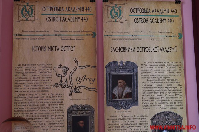 28 квітня до Вінниці привезли історію Острогу. У художньому музеї відкрили виставку пейзажів міста, а на площі Тараса Шевченка показала виставу про створення легендарної Острозької академії.