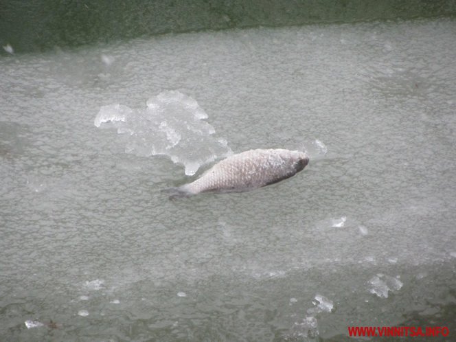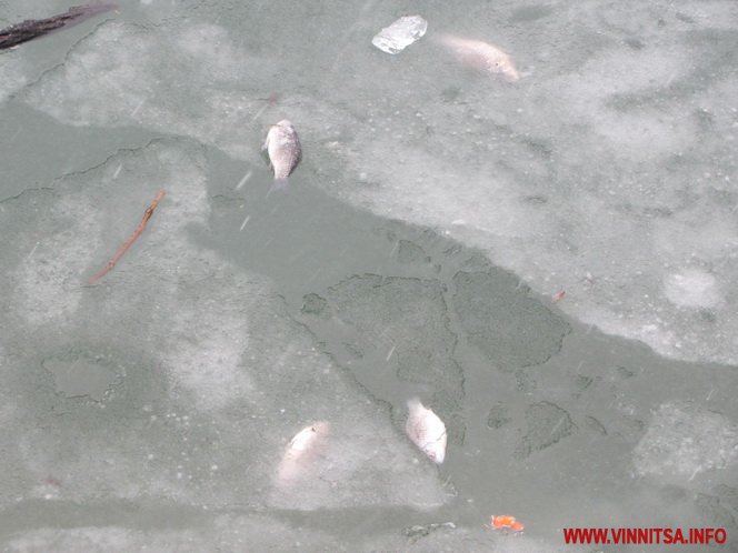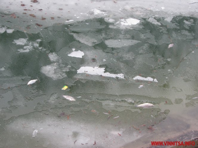 На озері, що біля Центрального парку ім. Горького, скресла крига, а разом з нею спливли неприємні наслідки чи то зими, чи то чиєїсь безвідповідальності. Поверхню вкрила мертва риба. Деяка вмерзлася в лід, іншу - прибило до берега.