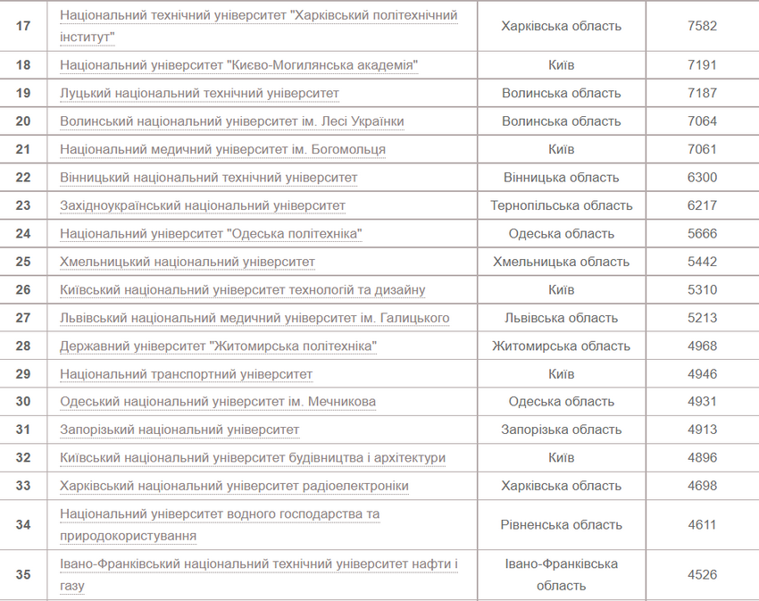 Вінницький національний технічний університет на 22 місці – 6300 заяв від вступників.