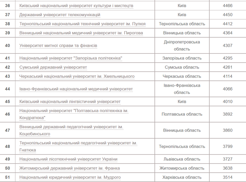 Вінницький державний педагогічний університет на 47 місці – 3860 заяв від вступників.