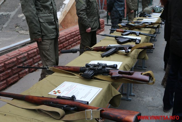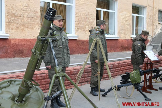 На плацу частини 3008 сьогодні продемонстрували всі види зброї, обмундирування та військової техніки, яка є на озброєнні у бійців. Це кулемети, РПГ, зенітки, бронетранспортери, БТР-и…