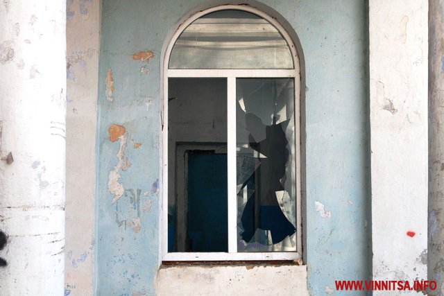 Вхід до «Хіміка» з розбитими вікнами і стовпчиками від паркану. З яскравими сонячними променями в парк злетілися голуби й ворони.