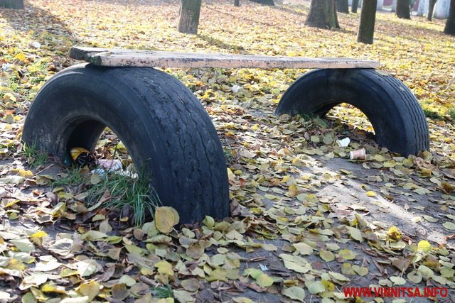 Після довготривалих дискусій «Хімік» у Вінниці так і залишився без оновленого дитячого майданчика, церкви чи місця для вигулу тварин. Попри це, тут багато мам з дітками у візках, гуляють пенсіонери… Осінь у парку виглядає не дуже привабливо…