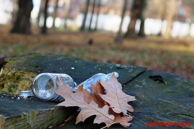 Біля саморобних лавочок – купа сміття: стаканчики від кави, обгортки… Під деревами – пляшки з-під алкоголю.