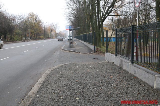 Більшу частину забору вже встановили, а ось асфальт покладений до зупинки, що навпроти будинку № 124. На значній частині вже облаштували паркомісця та нанесли відповідну розмітку, також виділені місця для людей з інвалідністю.