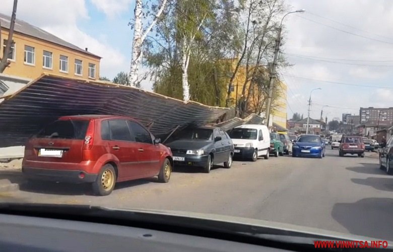 19 квітня у Вінниці на вулиці Некрасова паркан впав на шість припаркованих автомобілів. Незначні пошкодження отримали два транспортних засоби. Витрати на їх ремонт компенсують військові, адже саме навколо їх частини стояла огорожа.