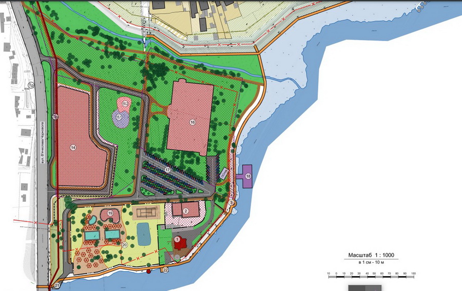 Нагадаємо, ще минулого року ажіотаж серед містян викликала новина про те, що на цьому місці, біля Південного Бугу, будуватимуть ТРЦ з McDonald’s. А нині, у міськраді вже повідомили про те, що стартують громадські обговорення та представили детальний план майбутньої території. Серед об’єктів, які існують там, десять у проєкті. А також, під реконструкцію підпадають ще два. Своєю чергою, редакція Вінниця.info вирішила детально розібратися, що і де може з’явитися.