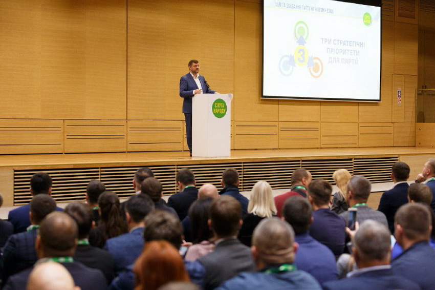 10 листопада в КВЦ «Парковий» провели позачерговий з’їзд партії «Слуга Народу» на якому погодили звільнення з посади голови Дмитра Разумкова, обрали Олександра Корнієнка і оголосили про участь партії у виборах ОТГ.
