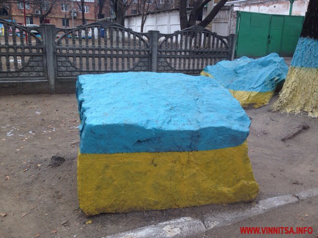 За останній рік Вінниця стала більш патріотичною та жовто-блакитною. У кожному районі міста вінничани-патріоти по-своєму оригінально розфарбували щось у кольори українського прапора. У кожному куточку Вінниці можна побачити жовто-блакитну поштову скриньку, паркан, міст, дерево, частину будинка і навіть каміння…