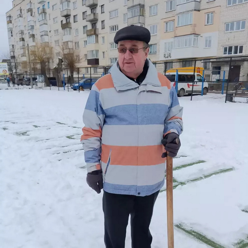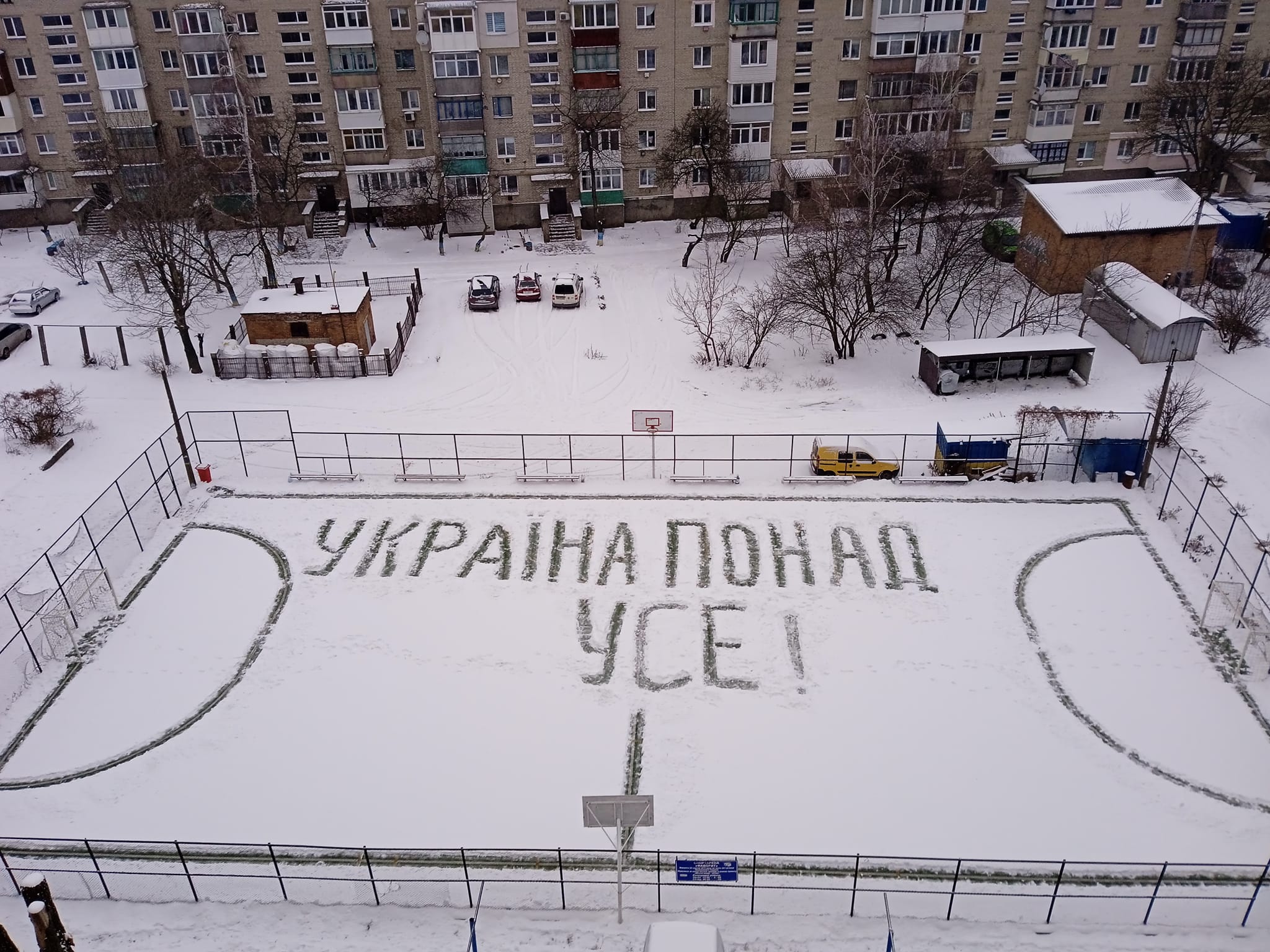 «В березні минулого року, я прийшов у військкомат. Адже хотів теж допомогти воїнам захищати країну. Мені на той час було 72 роки. На мене поглянули і кажуть: «дідусю, ідіть додому, не хвилюйтеся, у нас є кому воювати». Прийшла зима, випав сніг і мені прийшла ідея писати лопатою різні українські гасла. Я потім фотографував панорамний малюнок з вікна своєї квартири, на 9 поверсі і викладав світлини у соцмережі. В такий спосіб хотів підтримати моральний дух бійців та українського народу.