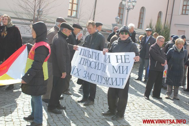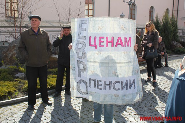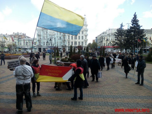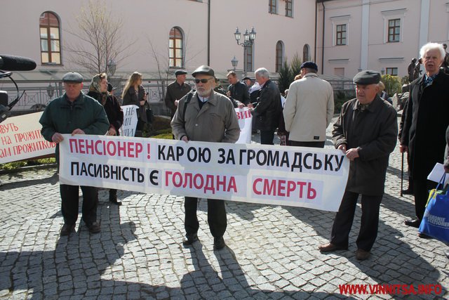 Ми проводимо таку акцію, щоб вимагати від влади гідної пенсії, щоб можна було жити, а не існувати. Щоб можна було «комунальні» заплатити, які вони нам встановили. Спробували б вони жити на нашу пенсію і нашу зарплату», - розповів Вінниця.info пан Василь.