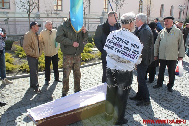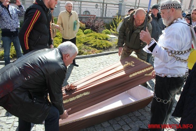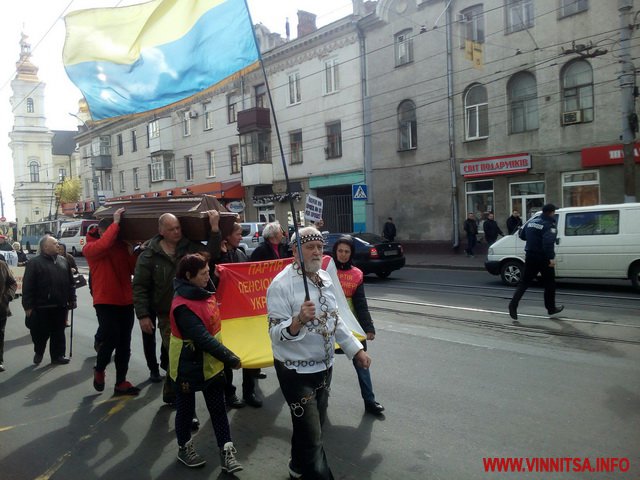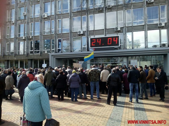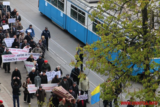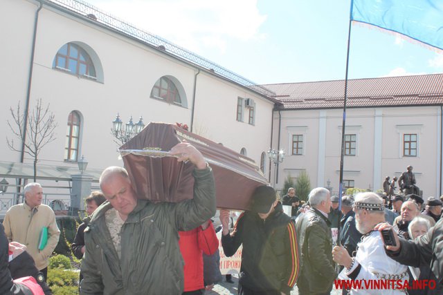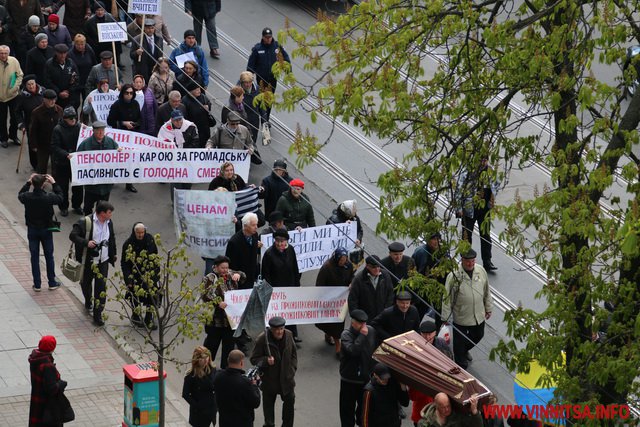 24 квітня у Вінниці близько сотні людей вийшли на акцію протесту. Більшість осіб - похилого віку. Активісти пройшли з труною маршем вулицею Соборною. За їх словами, лише таким чином можна привернути увагу до високих тарифів і низьких пенсій.