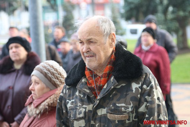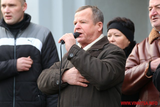 Серед пікетувальників люди, які з опозиціонерами до Вінницької мерії - Віктора Маліновського, Ольги Гандурської, Михайла Сіранчука… Серед натовпу людей помітили і екс-голову Вінницької облради Сергія Свитка.