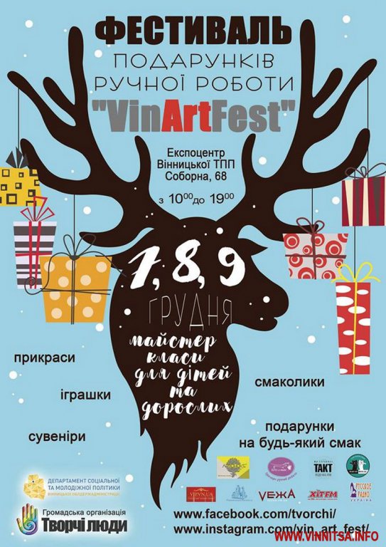 У Вінниці відбудеться вже традиційний фестиваль подарунків ручної роботи Vin Art Fest. 7, 8 та 9 грудня свої роботи презентують майстри зі всієї України. Місце проведення – Експоцентр, перший поверх кінотеатру Коцюбинського.