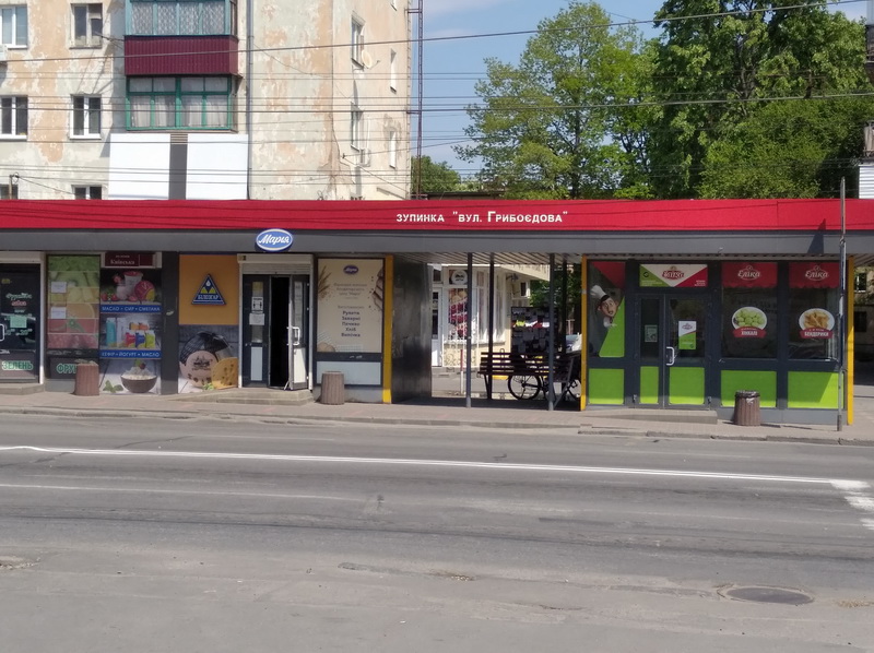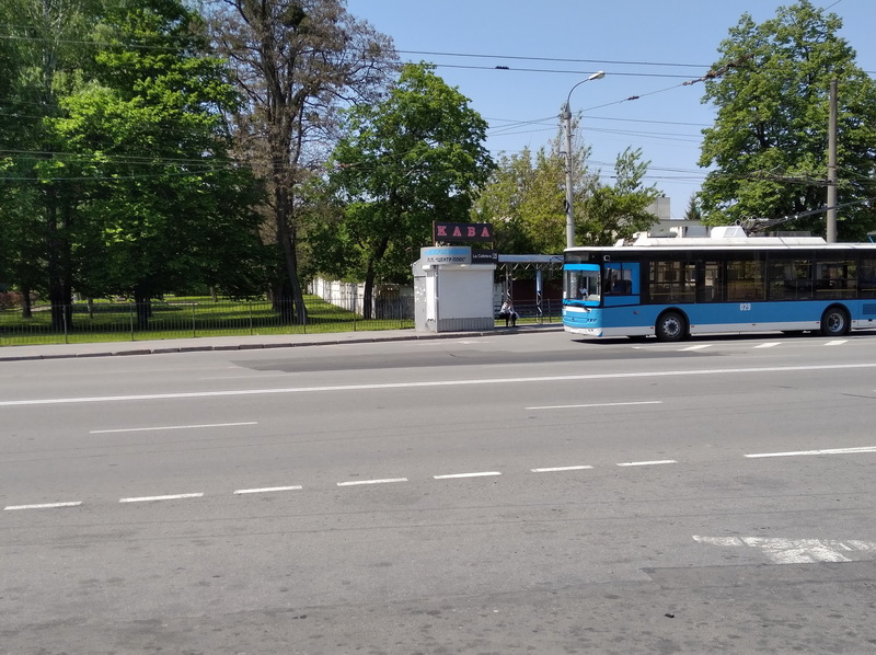 Впродовж 13:00-14:00 на зупинках громадського транспорту вздовж вулиці Київської малолюдно. Деякі – порожні взагалі. Тролейбуси, що курсують в бік центру, відповідно ‒ теж.