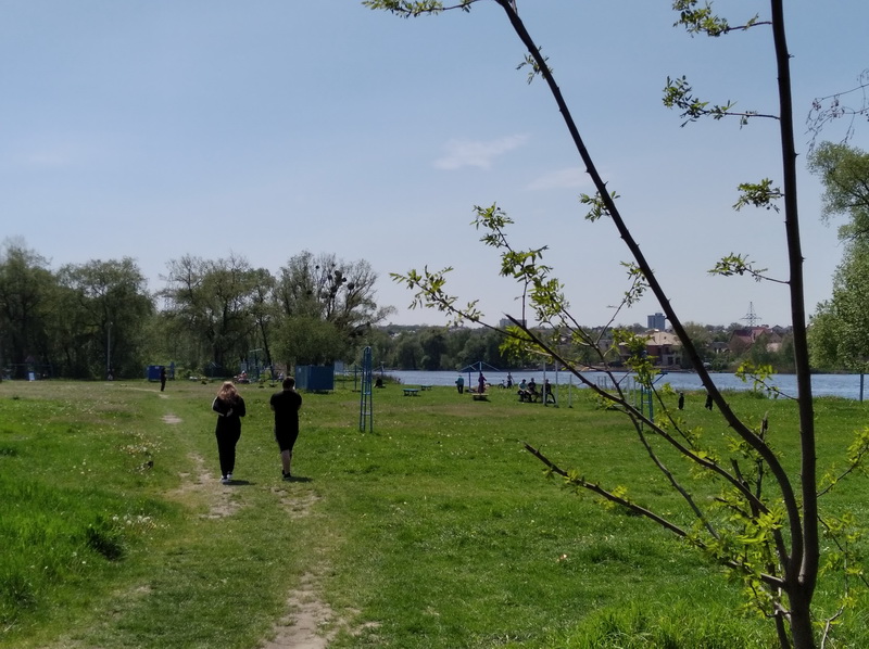 Втім, немало людей в теплий травневий день вибралися на відпочинок. На пляжі, що розташований неподалік зупинки «вулиця Гонти», вже збираються компанії та прогулюються пари. В масках – не всі.