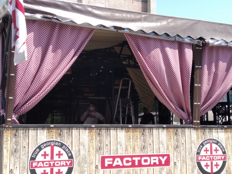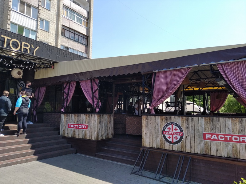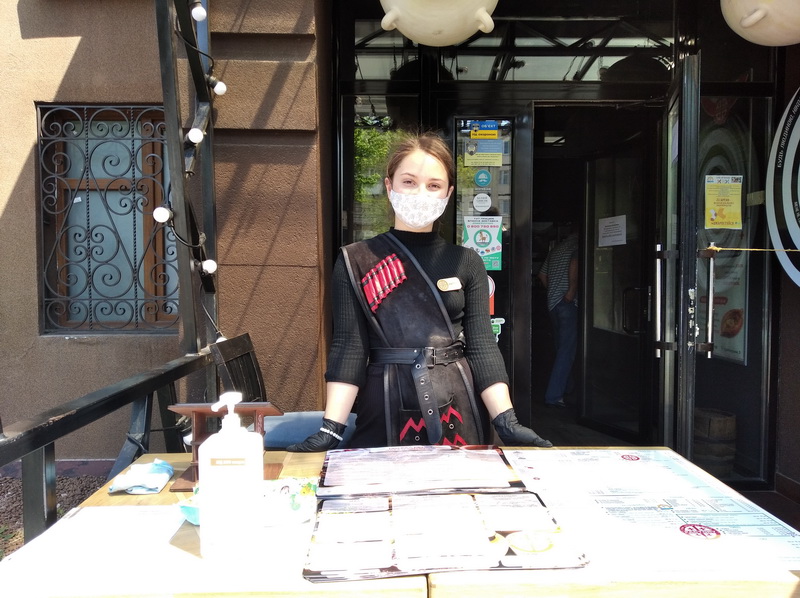 Біля входу до «Georgian Factory» відвідувачів зустрічає привітна офіціантка Наталія, яка готова проконсультувати клієнтів. Також для відвідувачів тут же залишили дезінфектор для рук.