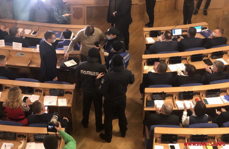 20 листопада проводять першу сесію Вінницької обласної ради. Голова обласної ТВК вручив депутатам посвідчення. Під час цього Сергій Щетинін, намагався зірвати засідання, називаючи діяльність облради незаконною. В результаті довгих «перемовин» з правоохоронцями його таки взяли під руки та вивели із зали. З аплодисментами… На першій сесії присутні 78 депутатів з 84.