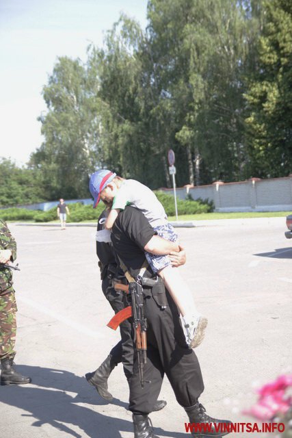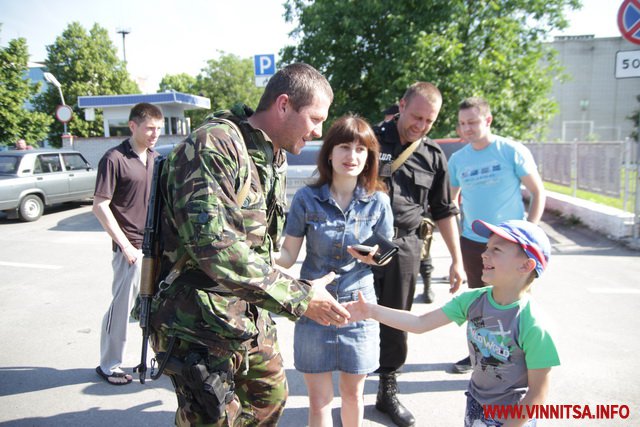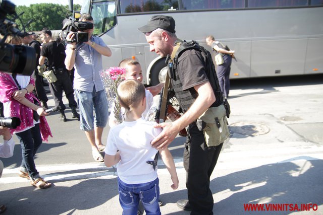 «Перша зміна» вінницьких правоохоронців повернулася у повному складі, без втрат та поранених, тож їх зустрічали рідні із квітами та посмішками. Окрім того, по приїзду додому товариші та керівництво УМВС Вінниччини привітало бійця роти особливого призначення Андрія Бесараба з народженням дочки Єви, яка народилася у день, коли пройшла інавгурація на посаді Президента ще одного вінничанина - Петра Порошенка.