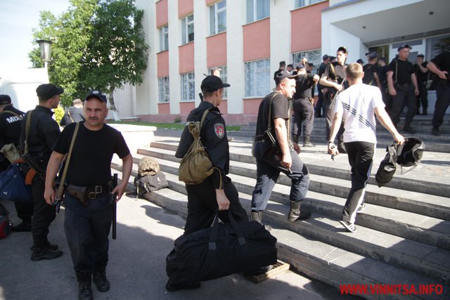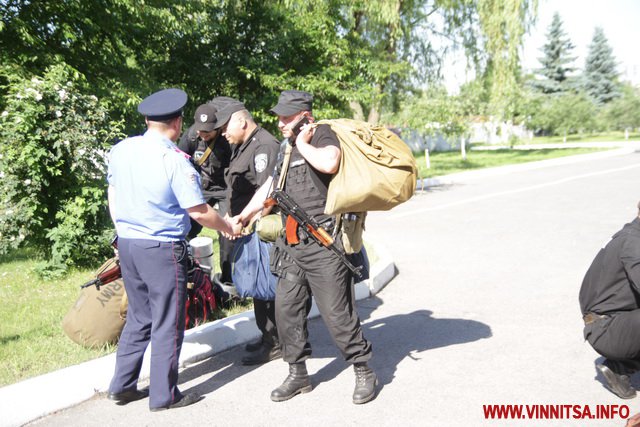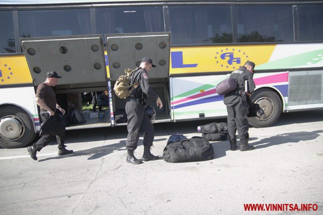 Через півтори доби після відправлення у зону антитерористичної операції «другої зміни» зведеного загону міліціонерів Вінниччини у складі 132 бійців, до Вінниці повернулася «перша зміна», яка майже місяць провела бойову службу на Сході України.