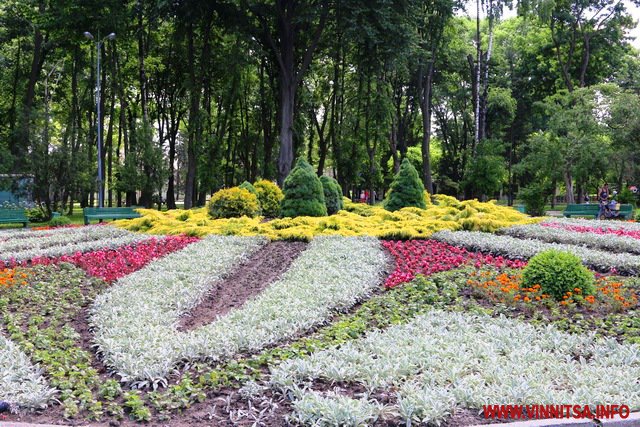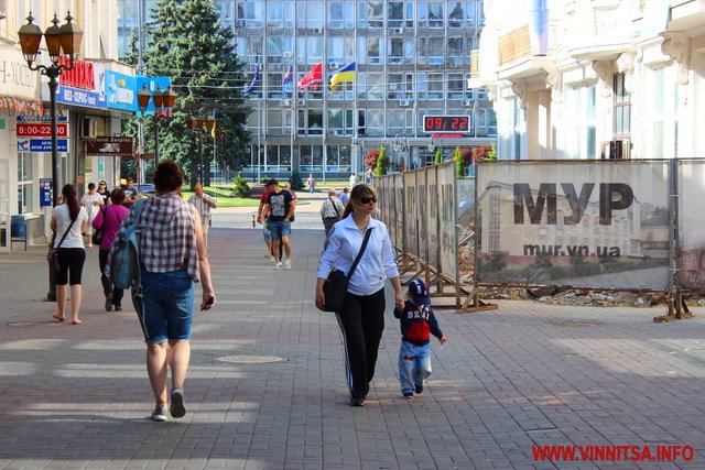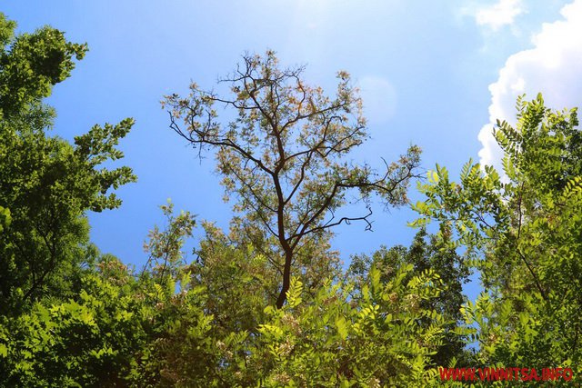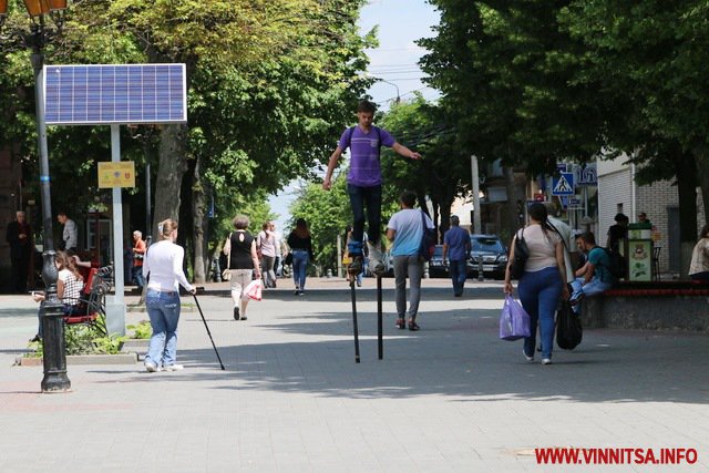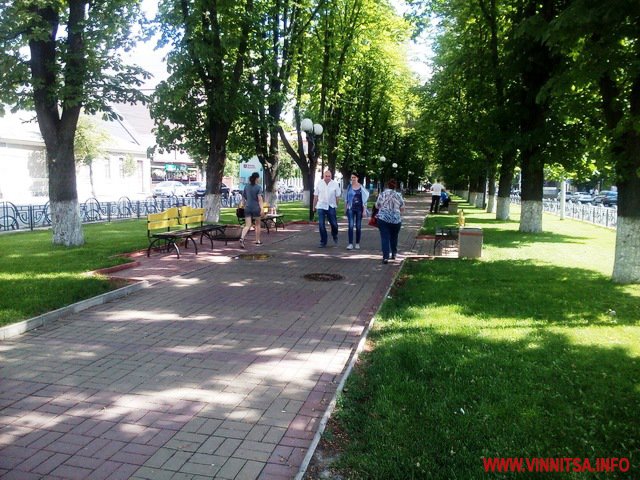 Погода у Вінниці дійсно літня. В повітрі пахне цвітом акацій, яких в центрі міста чимало. На траві, ніби сніг, лежить тополиний пух.