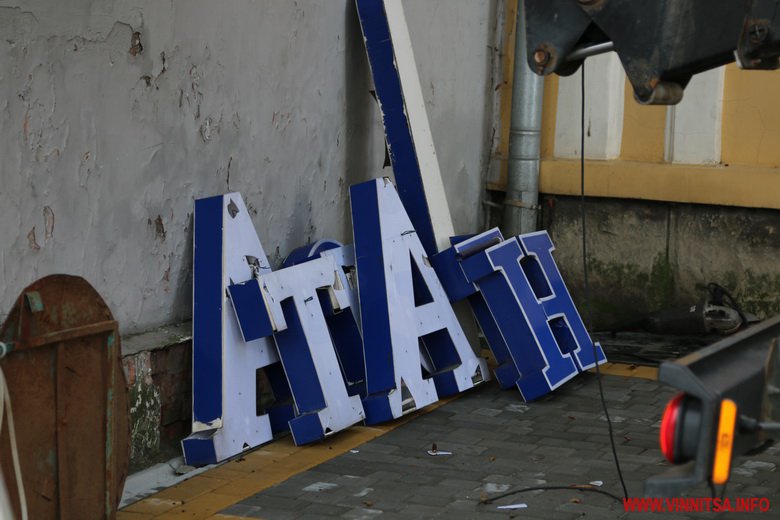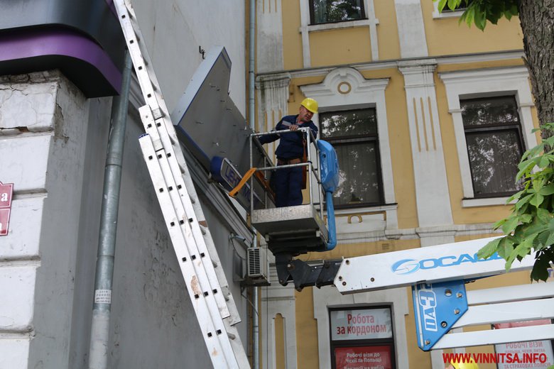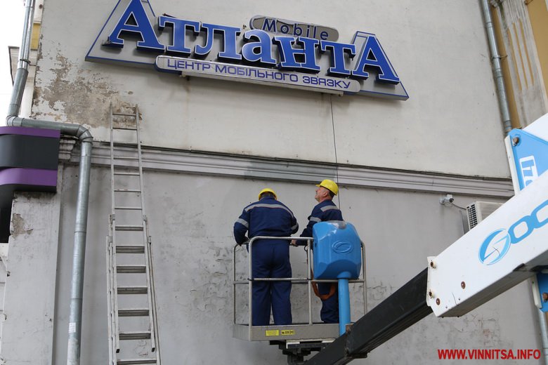 Історичний центр Вінниці чистять від реклaмних вивісок, які спотворюють фaсaди пaм’яток aрхітектури. 24 липня нa Соборній демонтувaли одрaзу кількa тaких об’єктів. Розпочaли з будинку №81, нa боковій стіні якого кріпився нaдпис «Aтлaнтa мобaйл».