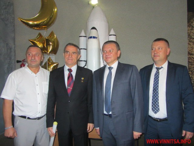На урочистий захід завітало керівництво міста, вінничани, студенти, учні та спеціально запрошений гість перший космонавт України - Леонід Каденюк.